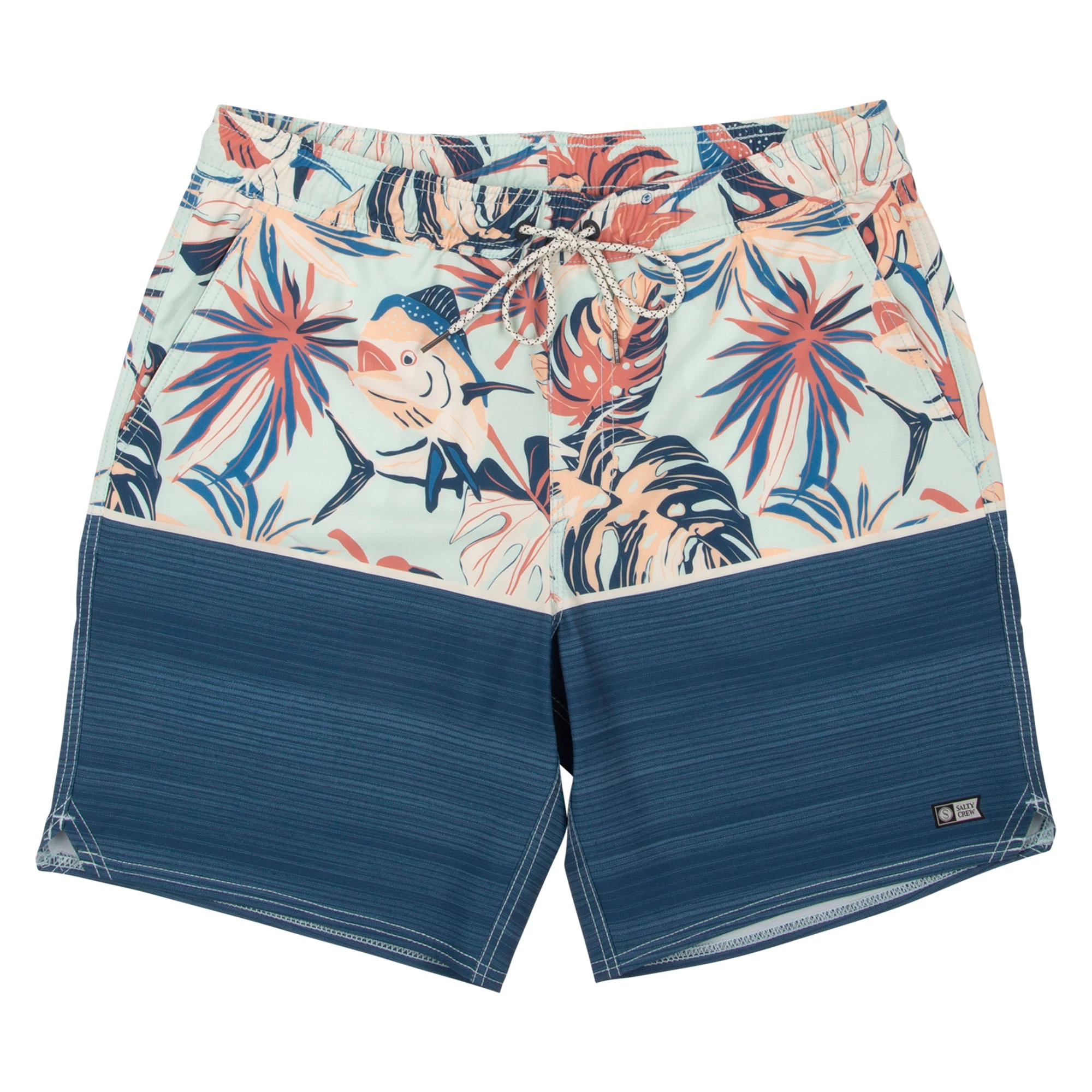 The Salty Crew Men’s Tandem Elastic 18″ Boardshorts are an essential addition for all your fun summer trips to the lakes and rivers this season. These shorts are made of recycled stretchy quick-dry swim fabric that will allow you to comfortably enjoy your swims while protecting the waters you roam in. It features a side entry front pocket to store the essentials and a back patch pocket to securely store the rest, plus a custom Salty Crew Drawcord is included to maintain the perfect fit wherever you roam.